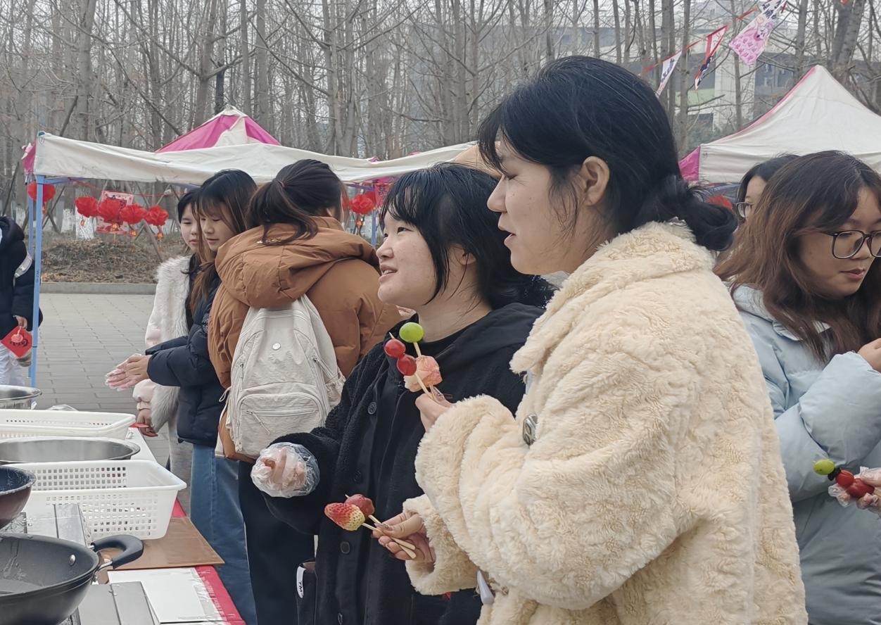 一串糖葫芦串起甜蜜心意,同学们精心熬制糖浆、挑选鲜果,将旧岁的收获与新年的期盼层层包裹。站在展示台前,轻轻拿起这串晶莹红火,咬下一口,冰糖的清脆与山楂的酸甜在舌尖绽放,仿佛把所有美好心愿都融进这一抹亮色里。让糖葫芦的甜,伴随开启2026年温暖又闪亮的新程!
