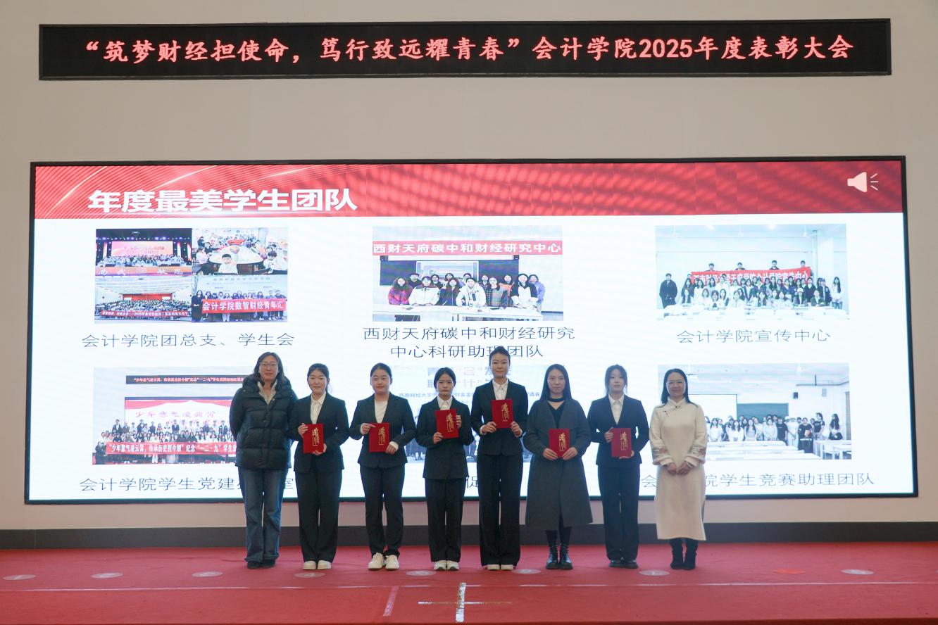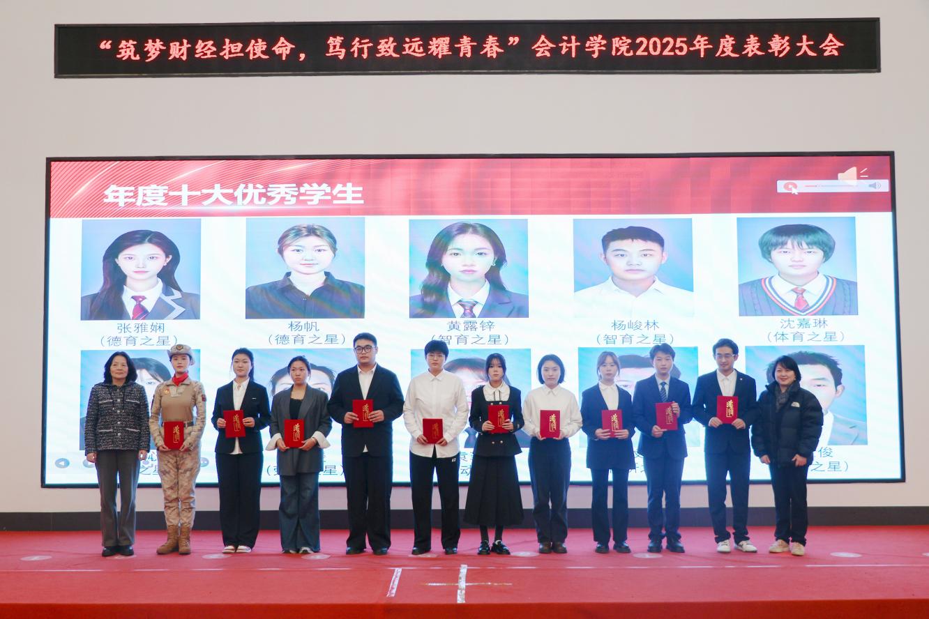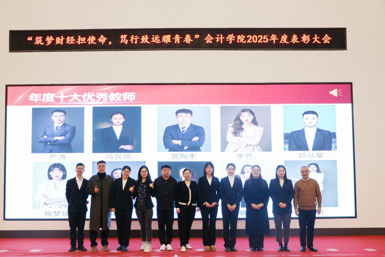 最终,大会在温馨感人的氛围中圆满落下帷幕。此次表彰大会不仅是对会计学院2025年育人成果的集中展示,更是一次凝聚人心、鼓舞士气的动员大会。未来,会计学院将继续坚守育人初心、勇担时代使命,以更加昂扬的姿态、更加务实的作风,培育更多高素质新财经人才,在高质量发展的道路上砥砺前行,绽放更耀眼的光芒!