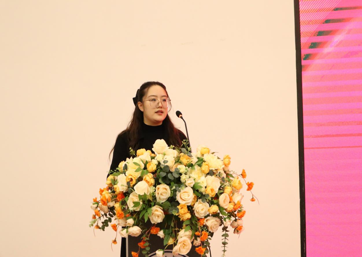 优秀学生代表张雅娴在发言中感慨,能作为学生代表见证这一荣光时刻倍感荣幸。回望过去一年,学院全体师生凝心聚力,涌现出许多先进典型。她分享了自己入选九三阅兵民兵方阵的经历,那段追求“米秒不差”的时光让她深刻懂得,每一份荣光背后都是日复一日的坚守与全力以赴的拼搏,这份精神力量也融入了求学之路。她表示,获奖集体与个人的奋斗身影值得每个人学习,就像阅兵方阵离不开每一个人的努力,学院的成绩也凝聚着全体师生的付出。新的一年,愿大家以榜样为镜,书写更加璀璨的青春华章。