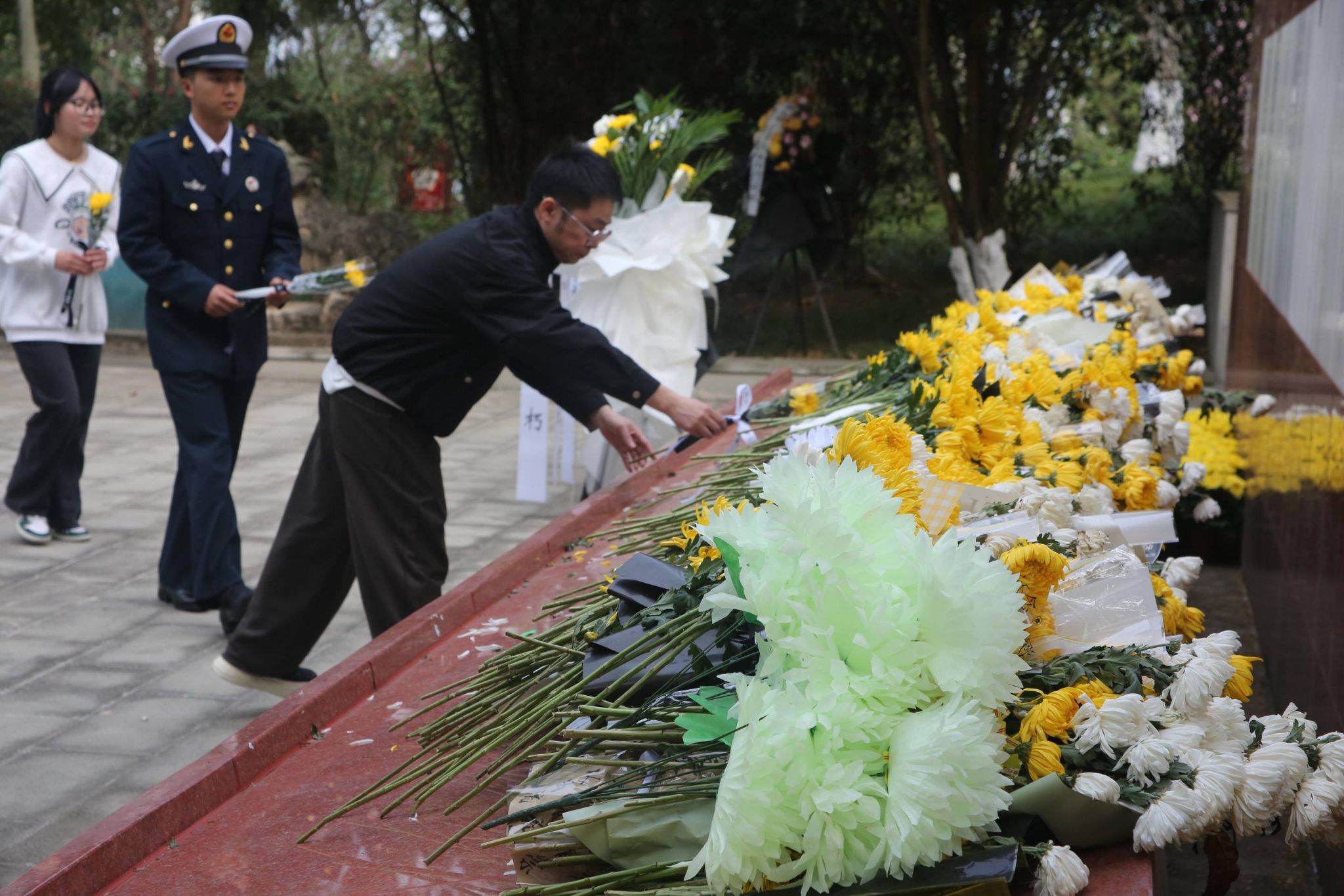 默哀与宣誓环节结束后,师生们手持鲜花,有序上前敬献于烈士纪念碑前,随后依次瞻仰纪念碑,近距离追思革命先烈的光辉事迹,寄托绵绵哀思。