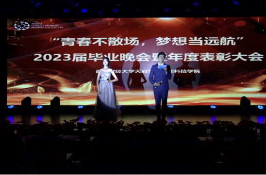 同窗共度,几载春秋;时光飞驰,岁月流逝。那一年的夏天,他们走进了这个充满期待的校园,这一步是他们遇见的开始,也在这一年的夏天,他们相聚西财天府,回望青春时光,激扬青春梦想。6月25日晚在学校绵阳校区学术报告厅,智能科技学院举行以“青春不散场,梦想当远航”为主题的2023届毕业晚会暨年度表彰大会。出席本次大会的领导及嘉宾有学校副校长刘强、学院院长徐鸿雁、学院党总支书记常荣、学院副院长陈婷、学院副院长陈小宁、学院全体老师以及毕业生代表。