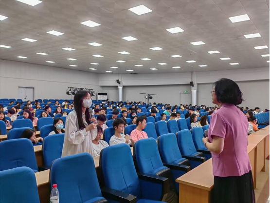 本次讲座共包括两个环节。在第一环节中,鲁旭辉从情绪的认识、特点及如何调节情绪等方面进行讲解,她重点向同学们介绍了自我调节情绪的方法,如正念冥想等。她强调通过掌握情绪调节的方法,可以让同学们合理地调控自己的不良情绪,做情绪的主人。第二部分是互动交流环节,同学们踊跃地提出自己的疑惑,鲁旭辉均逐一详细解答。
