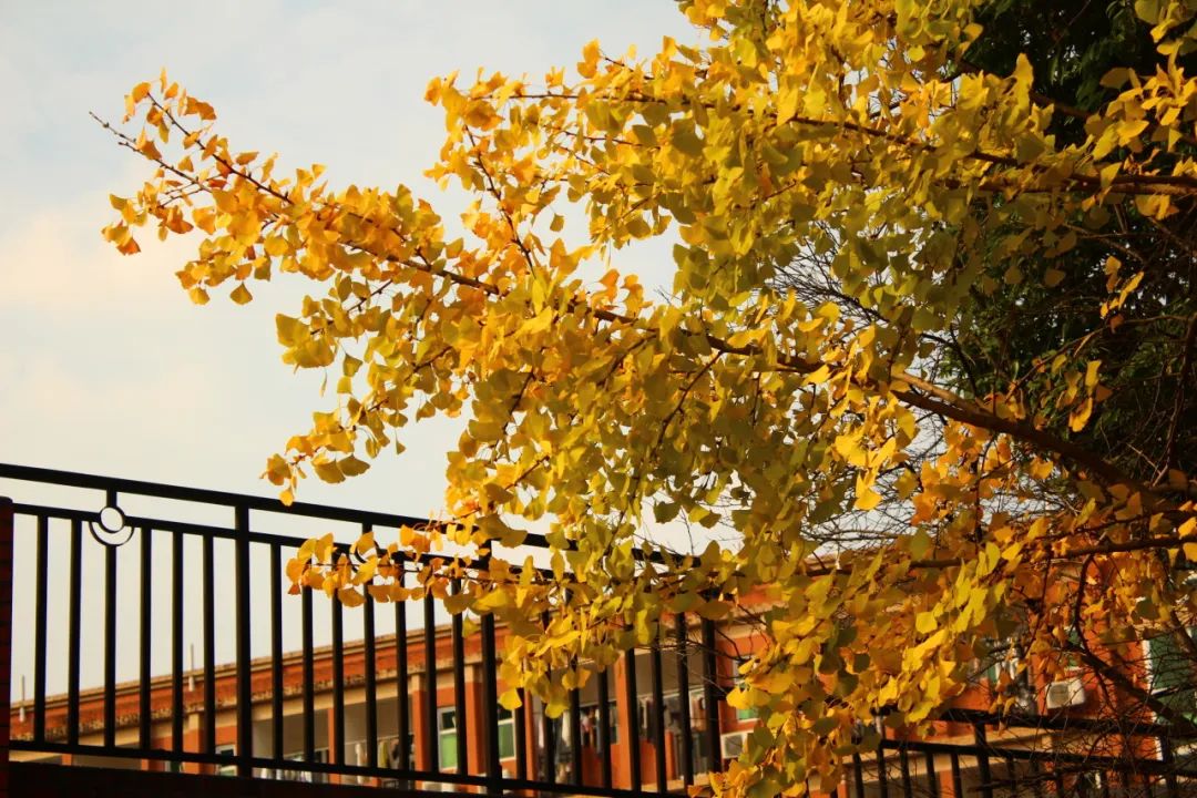 校园里的树叶逐渐变黄