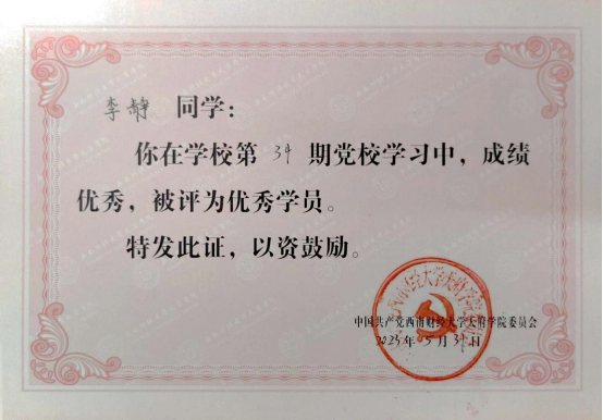 在人生的漫长旅途中,自律与逐步成长是通往自由与坚实基础的关键,每一次的自律都是自我超越的开始。在学习生活中,李静始终以乐观的态度去看待遇到的问题,这也是她能够始终保持一个良好学习状态的关键。兴趣是最好的老师,在日常的学习生活中,她努力培养自己对专业的浓厚兴趣,从而更有动力投入到学习中。李静以积极的心态去完成制定的学业规划,这是一个既自律又充实自己的过程。她注重在日常学习中查漏补缺,不断巩固和拓展自身的专业能力,并努力培养自己的创新思维能力。此外,她还广泛培养自己的兴趣爱好,以便在各类比赛中展现自己的才华。