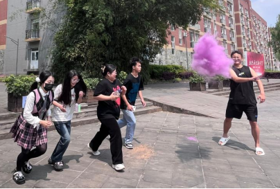 本次活动以小组为单位展开,集合热身后,参与者手持彩色粉末一同冲出起跑线,沿着规定的路线奔跑,并向其他队伍挥洒手中的粉末。彩虹跑活动在全体彩虹炸弹大联欢环节达到高潮,大家将手中的彩虹粉洒向空中,瞬间一片彩虹粉雾升腾在所有人的头顶,场面十分壮观热烈。随后,参与活动同学和工作人员共同留影合照,记录下了美好的瞬间。最后,活动后同学们对现场进行了清理,保证校园干净整洁。