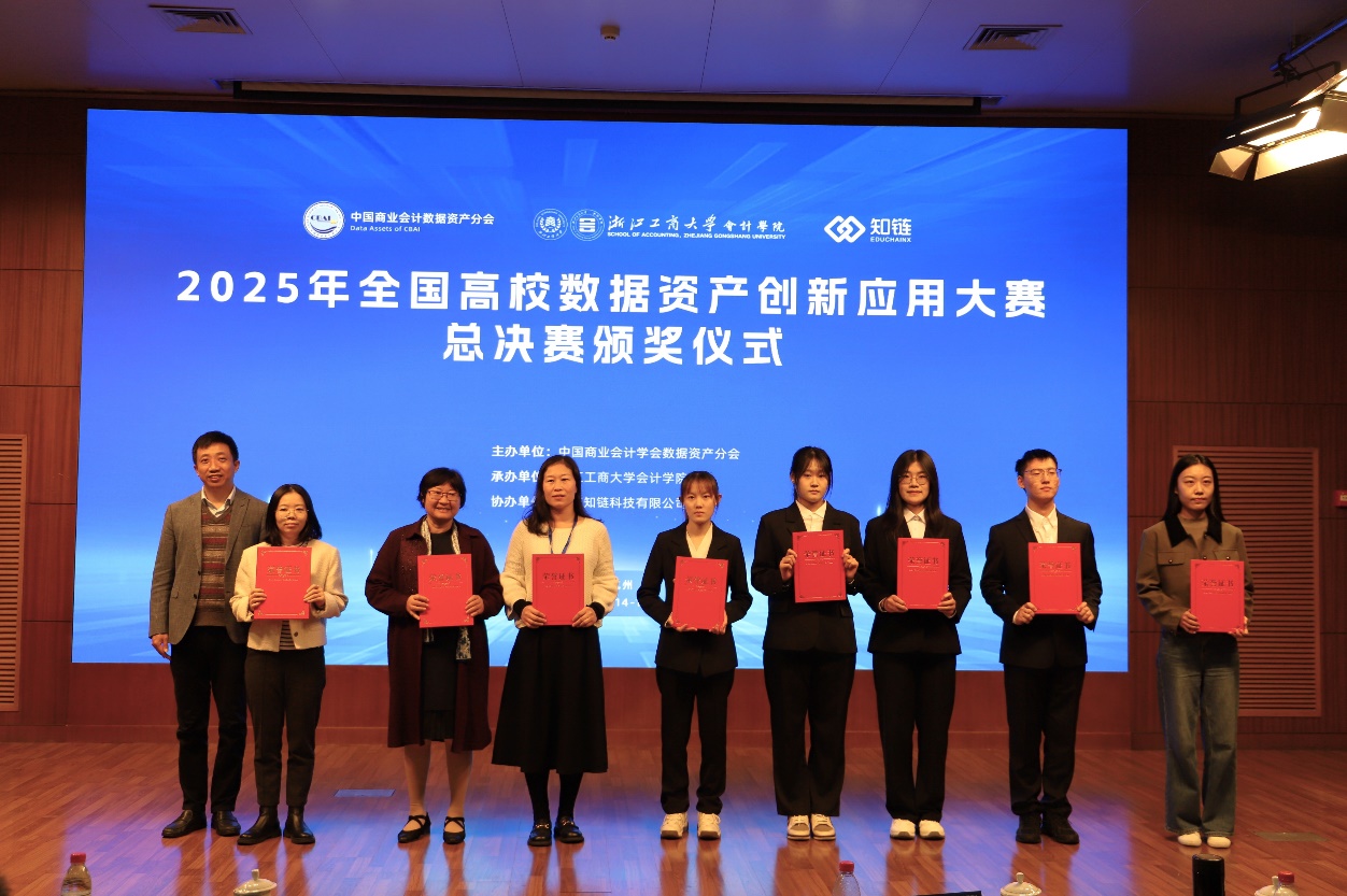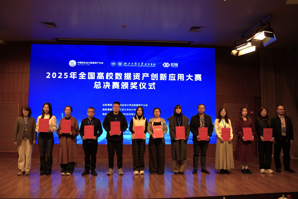 论坛尾声,还举行了第一届全国高校数据资产创新应用大赛颁奖典礼,表彰在数据资产创新应用领域表现突出的高校团队。学院师生获本科组、高职组及优秀指导教师共三个奖项。