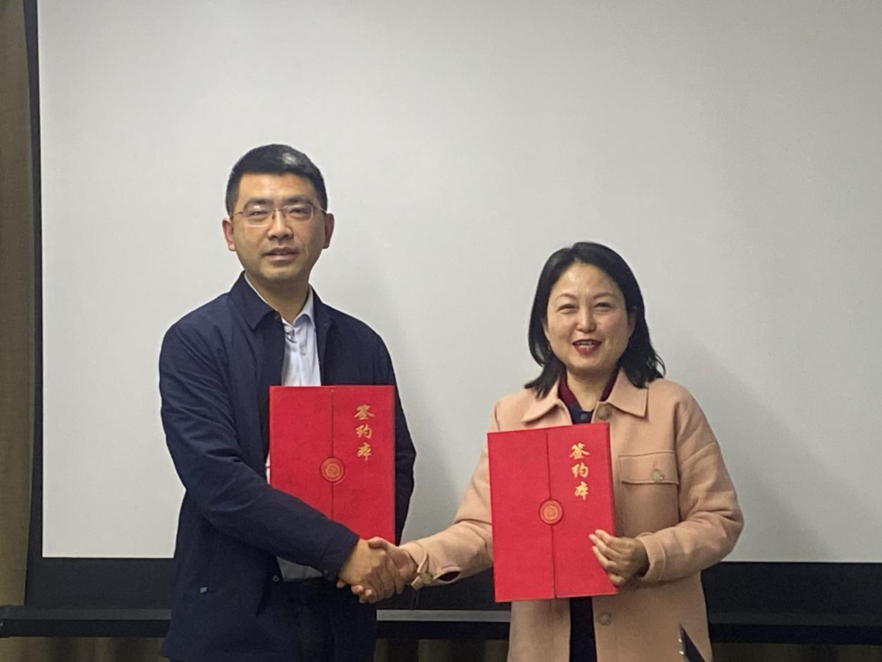 在签约环节,陈真子与瞿刚代表校企双方共同签署了《校企合作框架协议》。未来,双方将整合资源,共同推动数智化教育内容的开发与实践平台的搭建。