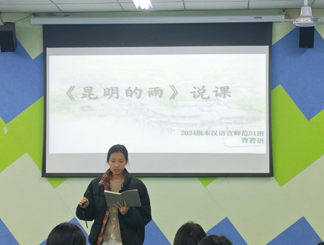 在说课展示环节,多位同学依次登台,围绕自选课题展开阐述。他们准备充分、逻辑清晰,借助精心制作的PPT,以饱满的教学热情进行课程展示。有的同学以“海上日出”为题,借助丰富图片带领大家领略自然之美;也有同学从教学目标、内容与方法等多维度系统说课,展现出扎实的教学基本功与个性化的教学思考。每位同学展示结束后,主持人及时进行点评,既肯定其教学思路清晰、教态自然等优点,也针对不足提出具体改进建议。在场同学纷纷表示,通过聆听与互动,对说课技能有了更深入的认识,受益匪浅。活动最后,李明奇为表现优异的同学颁发奖品,并对大家的整体表现给予高度评价,鼓励同学们在今后的学习与实践中持续锤炼教学能力,不断进步。
