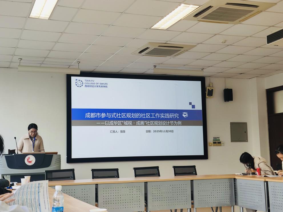 强薇受邀参加分论坛“新时代民生服务与社会治理现代化中的社工介入”并发言,她以成华区“城视・成画”社区规划设计节为例,阐述了成都市参与式社区规划的社区工作实践研究经验,探讨了参与式社区治理的路径和如何利用众创组、社区空间项目营造等方式,提高社区治理水平,促进社区环境的改善和居民生活质量的提升。