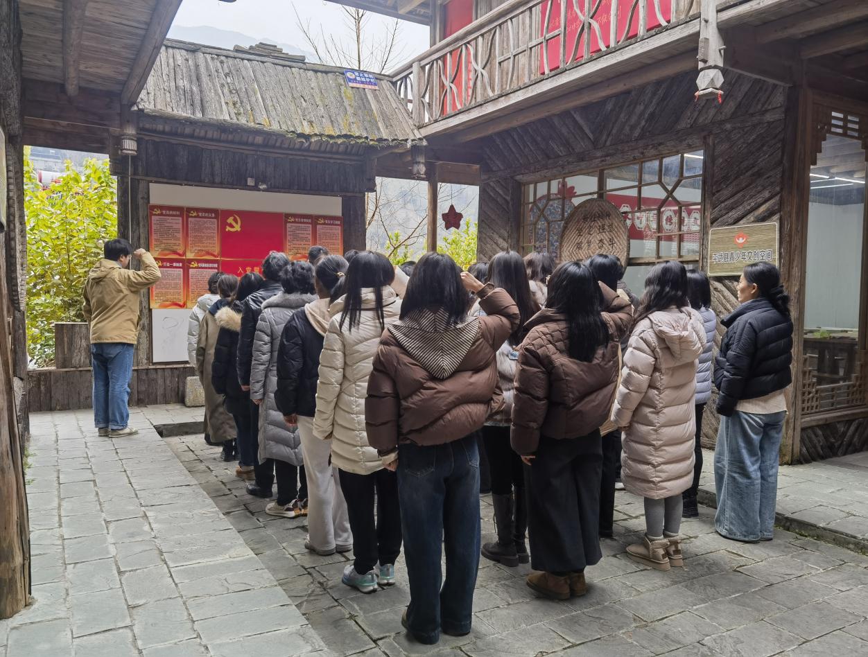 2025年12月30日,马克思主义学院赴绵阳市平武县走马羌寨,开展“新时代伟大变革与中华民族共同体意识”主题实践研修活动。本次活动由学院院长丁灵芝带队,智能科技学院与马克思主义学院40余名教师参加,旨在通过实地调研、文化体验与专题研讨,深化对新时代伟大变革与中华民族共同体意识的理解,提升思政课教学的实践性与时代性。