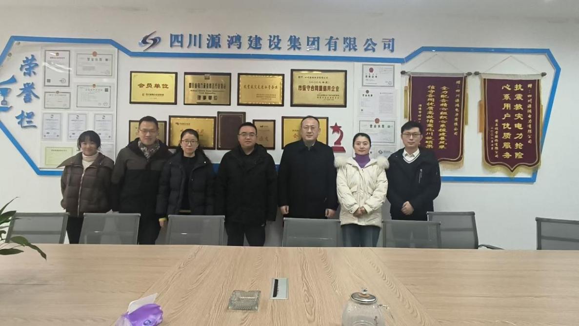 1月22日,工程与材料学院院长助理刘浩东,智能建造系主任张玉林、副主任陈倩等一行赴绵阳市源鸿建设集团有限公司开展校企合作专题调研与座谈。本次活动旨在针对电力施工行业智能化、数字化转型中面临的人才需求与培养错位问题,共同探讨校企协同育人新模式。源鸿建设集团总经理方鸿志、项目中心副主任母小英等企业负责人参与交流。