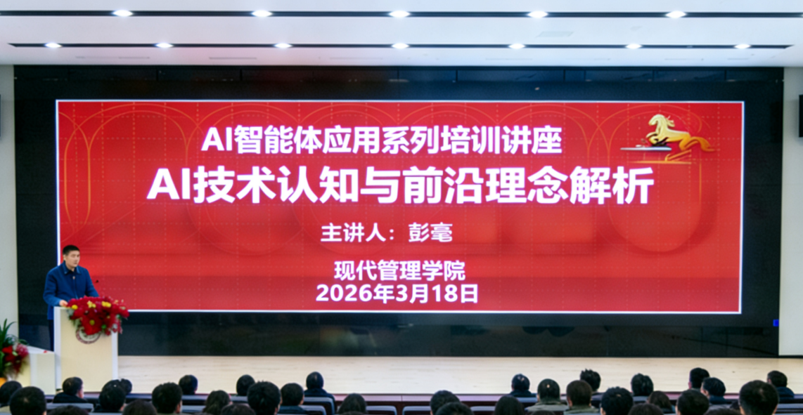 为推动智能体技术与教育教学深度融合,3月18日,现代管理学院举办“AI技术认知与前沿理念解析”专题培训讲座,特邀人工智能应用领域专家彭毫主讲,学院全体教师及学生代表齐聚一堂,共同探索人工智能时代教育教学的新路径。