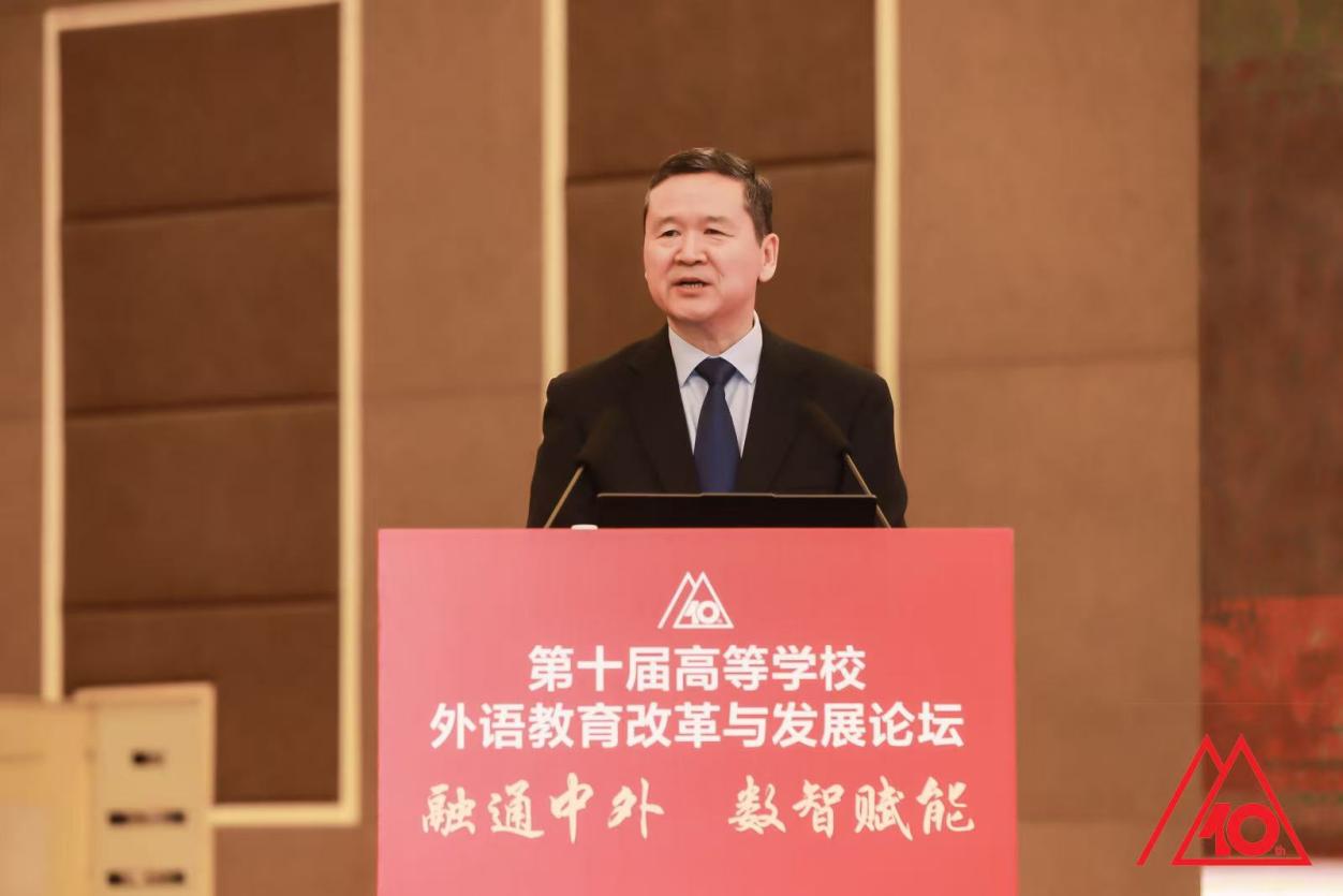 会上,教育部高等教育司武世兴司长发表《深化数智时代高等外语教育创新发展》主题报告,从国家教育战略高度系统阐释数智技术与外语教育深度融合的政策导向、实践要求与发展路径。报告强调,数智时代的高等外语教育需坚守立德树人根本任务,以数字技术推动教学模式、评价体系与资源供给的系统性变革,着力培养兼具家国情怀、全球视野与跨文化沟通能力的国际化人才,为服务国家文化“走出去”战略与教育强国建设提供支撑。