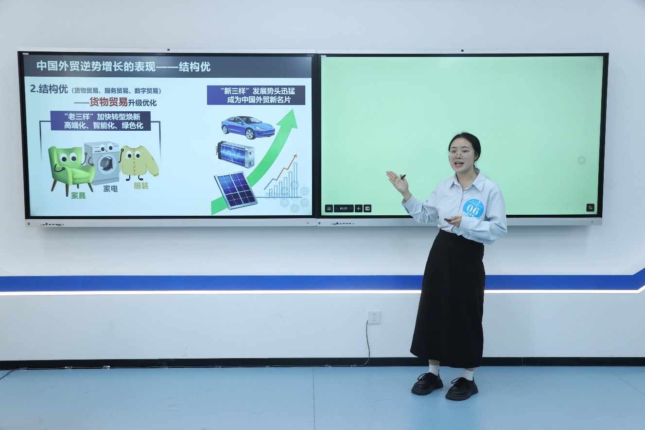 本次年会以“深学全国‘两会’精神 勇担‘十五五’使命”为主题,分为主旨报告、教学比赛与实践教学三个部分。主旨报告环节,外交部中国国际问题研究院美国研究所原所长、研究员滕建群作“当前国际形势演变中美关系新发展及我之应对”专题主旨报告。他从国际政治、经济、军事以及新兴技术发展等多个层面,深入剖析了当前的国际形势,并阐述了中国在国际变局中的战略定位与应对策略。教学比赛环节,来自四川省内多所高校思政课教师进行教学展示。学院教师文丽以“中国对外贸易何以顶住压力‘逆势增长’”为题,从“如何增长、为何增长、青年何为”三个方面,系统剖析了中国外贸逆势增长的现实表现与深层原因,授课思路清晰、案例鲜活、教态从容,最终荣获一等奖。