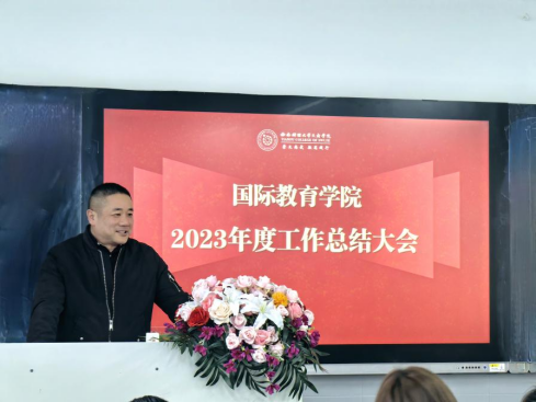 管勇全面总结了国际教育学院在2023年度的突出进展与成果。在全院师生团结协作的基础上,学院在国际化合作、课程建设、教学革新、学生支持与服务等方面取得了显著成果。结合学院近二十年的发展轨迹,管勇强调了国际教育学院的人才培养目标:“助力每一位学子成长成才”。他激励全体教职员工在新的一年里,始终坚持“以学生为中心、以未来为起点”的理念,持续强化学生行为规范,营造积极进取的学习氛围。教师与学生管理团队紧密协作,充分整合校内外、国内外资源,积极开展各类竞赛、活动、讲座以及培训等,帮助学生不仅实现学历的提升,更能实现综合素养能力的提高,为未来就业和终身发展奠定坚实的基础。