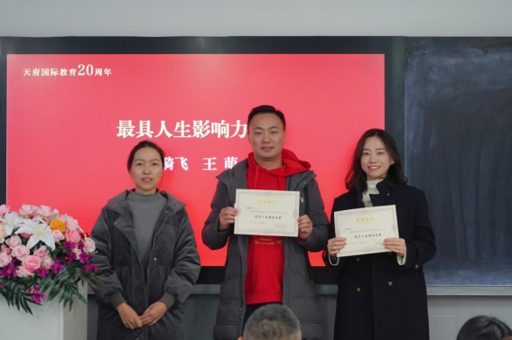 为最具人生影响力奖获得者李漪飞、王萌颁奖