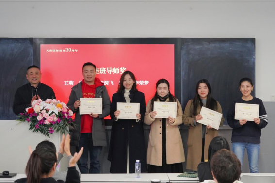 为最佳班导师奖获得者李漪飞、王萌、宋高南、李荣梦、衡曦颁奖