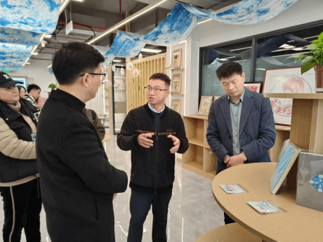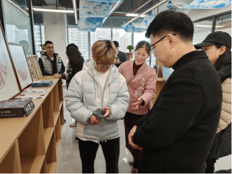 随后,绵阳市非物质文化遗产保护中心一行人移步至创新中心“颐夏·科创非遗基地”进行参观。该基地致力于把科技深度融入非遗的研究与保护中,收藏了大量珍贵的非遗资料、非遗作品和研究成果。在参观期间,智科学生对其非遗作品的创意、细节以及特色进行了详细介绍,赢得了绵阳市非物质文化遗产保护中心一行人的高度赞赏。