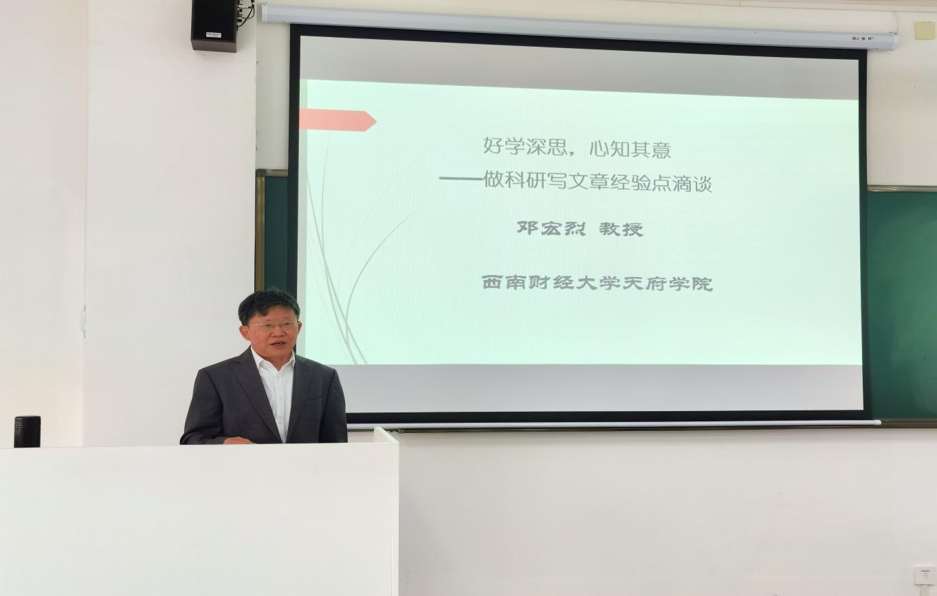 邓宏烈以“好学深思,心知其意”为主题,结合自己多年的科研经历对如何做科研、写文章进行了经验分享。他提到,做科研关键在于积累、力行、修行、苦行与专一五要素相统一;写好一篇文章,要从选题、构思、创作、打磨、投刊等环节深入分析。他勉励学院教师在科研道路上努力前行,终获硕果。