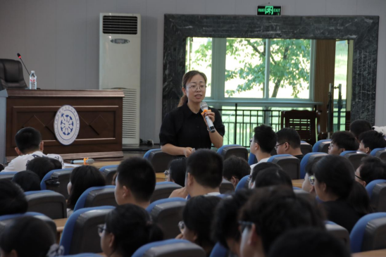 常荣以“崇文尚武启新程,敏思践行筑梦想”为主题,以提问的方式引入三个问题“大学是什么?你做好上大学的准备了吗?你准备怎么上好大学?”带着思考,从四个方面开启了新生的“开学第一课”。常荣在校史文化中着重强调了一个头脑、两个工具、三个习惯、四项品质。一个头脑指的是学生具有财经头脑的创新思维;两个工具即要求学生具备良好的财经管理和信息技术的应用能力;三个习惯是指自信、自律、自学,学生需具备自信心和自律性,养成自主学习的习惯;四项品质是指忠孝、廉耻、诚信、勤奋。懂忠孝、知廉耻、讲诚信、能勤奋是学生取得终身成就的基石,通过学长学姐案例故事让新生同学们爱校荣校。接着在责任担当中强调学生应注重责任意识培养,加强自我管理能力,强化担当,争做新时代有为青年,通过“创新班的故事”“小宇宙大能量的故事”让新生具象感受如何成人成才。在核心能力方面着重指出学生应以学生职业发展为目标,能力提升为主线,知识学习为载体,学校为学生提供了很多平台,大家可以好好利用起来,更好聚焦砺炼,培养核心竞争能力。此外,常荣走下讲台,与学生们面对面交流,就学生对未来职业规划,展开深入而细致的探讨。通过互动方式,无疑让众多学子受益匪浅,他们的疑惑得到了解答,思想得到了启迪,能够在大学收获幸福,培养理性平和,积极乐观的品质。