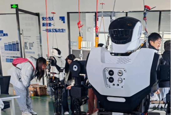 随后,在刘洋的引领下,同学们深入绵阳乐聚公司内部。同学们了解到了公司的战略布局、业务生态及精英专家团队,使同学们初步领略到公司的核心竞争力。随后,他引领同学们步入机器人展示区,近距离接触明星产品——“夸父”人形机器人,这一体验不仅直观展现了机器人技术的魅力,也为同学们的学术探索和职业规划注入了宝贵灵感。