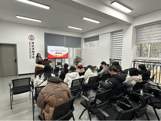 1月15日,智能金融学院在28栋1楼成功举办了2024年度校级“思想政治教育研究”专项项目申报分享交流会。此次交流会由学院分党委副书记刘秀担任主持人,并特邀马克思主义学院副院长陈丹丹副教授作为主讲嘉宾,为与会者带来了一场精彩纷呈的分享。学院分党委副书记罗婷、经济系主任丁文将、金融系主任周方以及部分教师、辅导员老师也积极参与了此次交流会,共同探讨了思想政治教育研究项目的申报经验和未来发展方向。