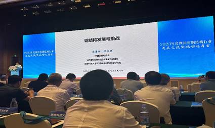 会议由四川省住建局程刚副厅长做开场致词,提出建筑业转型升级发展方向即装配式钢结构建造,并将会在成都、绵阳、达州、宜宾率先推行智能化建造试点。中国工程院院士岳清瑞做《钢结构发展与挑战》报告,报告指出国家正大力推广钢结构住宅,强调耐候钢、耐火钢、降噪钢、高强钢等高性能钢的使用,加大建设钢材的研发力度,形成高水平专业研发团队。