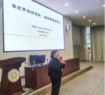 在德阳校区的培训会上,陈真子围绕立德树人的主题,从国家政策方针、师德师风警示教育、学校的办学理念和人才培养目标等方面展开阐述。她明确指出,学校的人才培养目标是培养具有“一个头脑、两个工具、三个习惯、四项品质”的人才,新教职工应尽快理解和掌握帮助学生获取知识、如何做人、做学问的原则和基本方法。她强调,新教师应该创造自我发展和成长的环境,贯彻天府学院“以学生职业发展为目标,以综合能力提升为主线,以知识学习为载体”的人才培养模式。