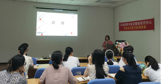 伍红梅从科研工作对图书馆馆员综合能力提升、学校发展的重要性入手,回顾了中心的建立历程,详细介绍了主讲专家赵静的科研经历和成果,指出图书馆作为学校重要的文化场所,对人才培养有着积极的作用,馆员要有意识提升各方面工作能力,将文献保障和知识服务做深、做细,助力学校转型发展和人才培养。