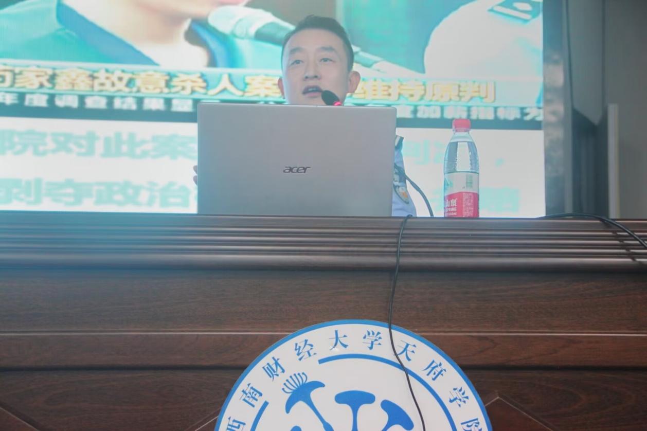 活动开始,罗国勇从一位警察的视角出发,以安全为主题从交通安全、财产安全、人身安全三个方面进行讲解,通过大量案例分析向同学们强调安全的重要性,警示同学们要时刻保持警惕,提高安全防范意识。在交通安全方面,
