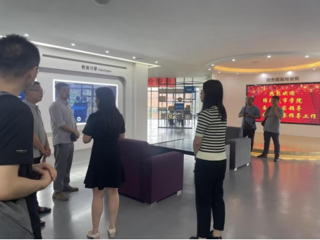 座谈结束后,一行人参观了财务共享实训中心、大数据智能风控实验室。余凤娟对会计实验教学中心发展历程、实验室管理、实训课程设计等方面进行了介绍。