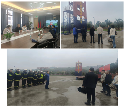 在钟勤带领下刘强一行人参观了消防救援实训基地,包括消防器械实训室、消防灭火实践场地、绳索演练实践场地以及消防救援实践场地。