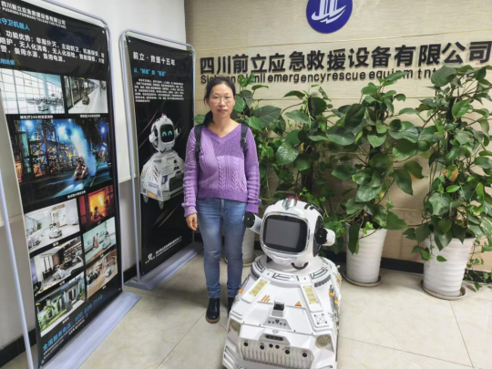 四川前立应急救援设备有限公司是一家专注于信息数字化与装备智能化的研究与应用开发的公司,秉持“生命至上,装备保障”理念。目前,该公司已推出多款应急救援领域的机器人产品,涵盖消防巡查机器人、室内安防机器人、工厂巡查机器人等。在此次调研中,张菊参观了该公司机器人相关的部分产品。随后,双方围绕企业的人才需求以及学生实习机会等进行了交流与探讨。