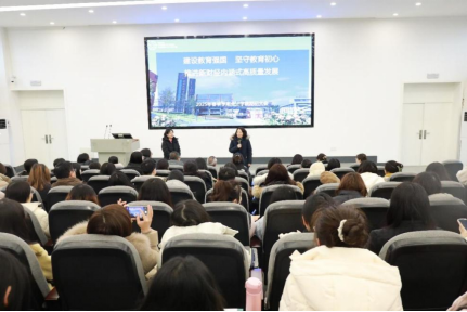 陈真子介绍了学院的基本情况,也对会计学院形成的“会计+”“新技术+”新财经人才培养生态的多年实践和不断拓展的蓝图进行了详细解读。随后,她结合对纲要的解读和人工智能技术引发的教育变革的思考,就“高质量、教育家精神、教育生态重塑、人性护城河”四个关键词,从教育、教学、教师三个维度进行了思考,以此对学院的工作提出新的思考和要求。