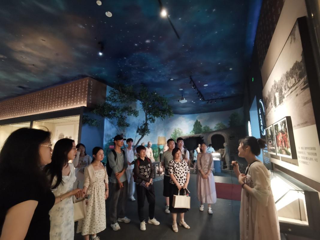 在卿莹的带领下,团队成员参观了李白纪念馆和纪念馆内的图书馆,跟随赵娜老师的讲解和唱诵,大家从李白的家谱到他仗剑游天下,从诗歌到书画,更深入的了解和感受了李白的生平事迹和浪漫人生及其后世影响。