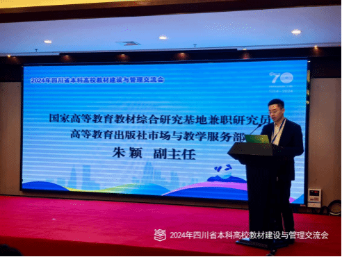 随后高等教育出版社市场与教学服务部副主任朱颖发言,他表示,新时代教材建设必须牢牢把握党管教材根本要求、立德树人根本任务、服务全局发展定位、支撑教育强国建设战略目标和建设高质量教材体系重要使命,聚焦用习近平新时代中国特色社会主义思想铸魂育人,用心打造培根铸魂启智增慧的精品教材。