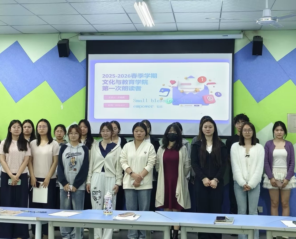 4月13日晚,文化与教育学院E-star Club英语社在三教一楼声乐室顺利举办了以“Small blessings that empower us”为主题的第六期朗读者活动。本次活动聚焦“微小而赋能的美好”,同学们以声传情、以文达意,通过真挚的朗读,呈现了对“小确幸”的个性诠释与深度思考。彭美琳同学从日常温暖片段出发,朗读治愈系文本,探讨平凡生活中幸福蕴含的韧性力量;万瑞雪同学则围绕“幸福的意义”,分享成长中温暖相伴的体验,并反思忽视身边美好可能带来的遗憾,...