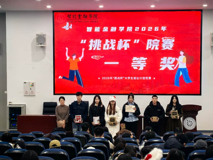 为表彰创新创业先进典型,激发青年学子创新热情,12月29日,智能金融学院2026年“挑战杯”大学生创业计划竞赛院赛颁奖典礼在成都校区(东区)238教室顺利举行。学院分党委副书记刘秀、副院长陈娴、第一党支部书记刘佳、经济系主任丁文将、科创中心副主任田睿出席典礼并担任颁奖嘉宾,全体参赛队伍和部分学生代表共同参与。活动现场本届院赛自10月启动以来,共吸引全院52支团队、近300名学子踊跃报名,征集到科技发明制作、自然科学类学术论文、...